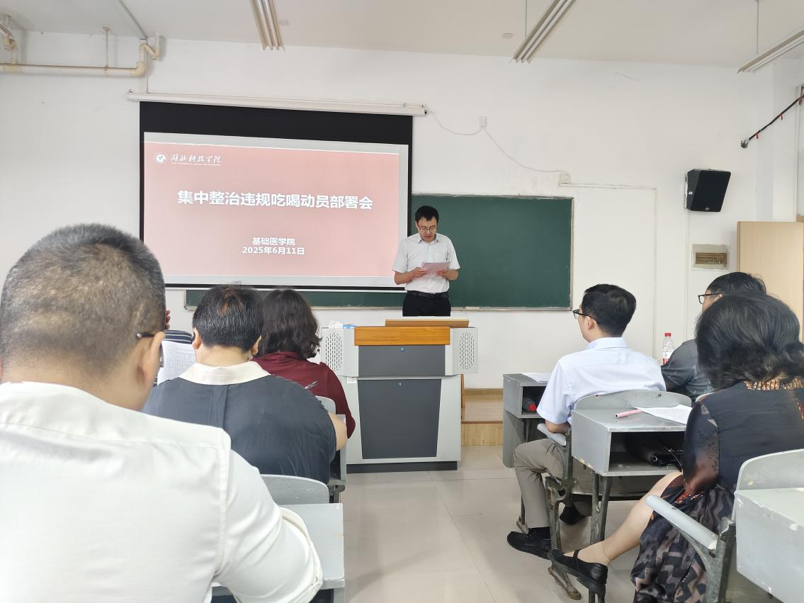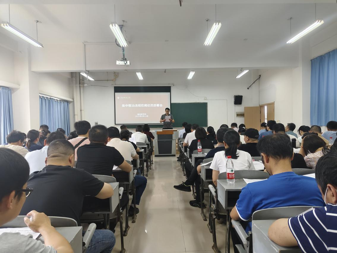 (通讯员:王平霞,审核:晏彪 程梦琳)为深入贯彻落实上级关于加强作风建设的重要指示精神,持续巩固拓展中央八项规定精神成果,坚决遏制违规吃喝歪风,营造风清气正的育人环境与科研生态。2025年6月11日,意昂体育在医药楼1栋307多媒体教室召开全院集中整治违规吃喝问题专项工作动员部署会。公司党委书记程梦琳主持会议并作动员讲话,公司领导班子成员及全体教职工参会。